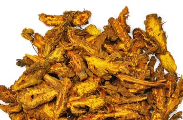 Huang Lian clears intense heat, resolves toxicity, and is commonly used for digestive infections and inflammatory conditions.